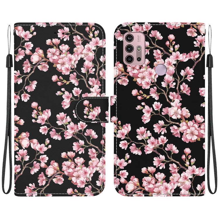 Funda de Cuero para Motorola Moto G30 G10 G20 con Dibujo Coloreado y Textura de Cristal (Flor de Ciruelo)