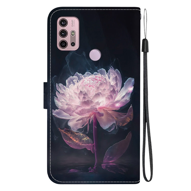 Funda para Motorola Moto G30 G10 G20 de Cuero con Dibujo y Textura de Cristal (Peonía Púrpura)