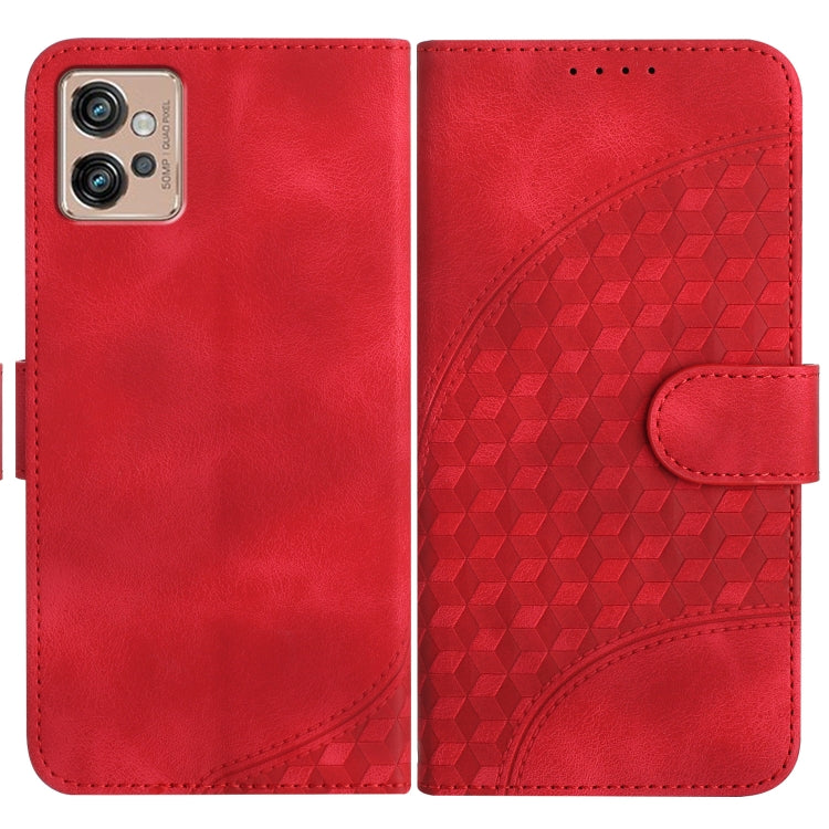 Funda de Cuero para Motorola Moto G32 Yx0060 con Relieve y Cabeza de Elefante con Cordón (Rojo)