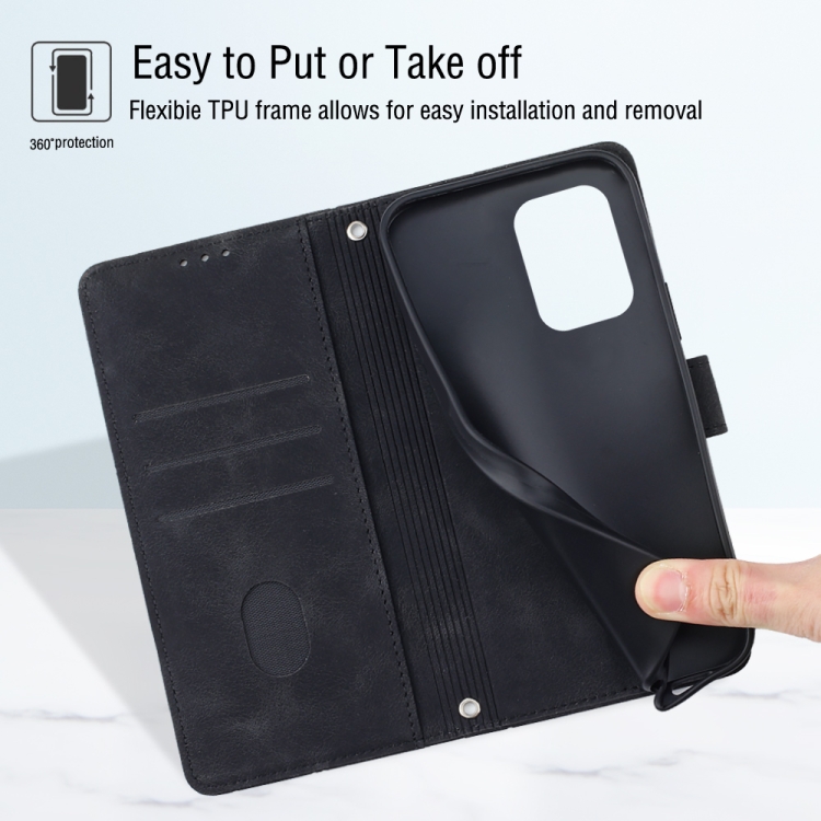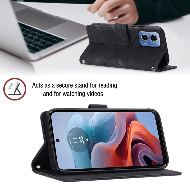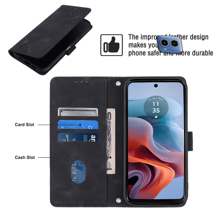 Funda de Cuero con Relieve y Sensación de Piel para Motorola Moto G34 (Negro)