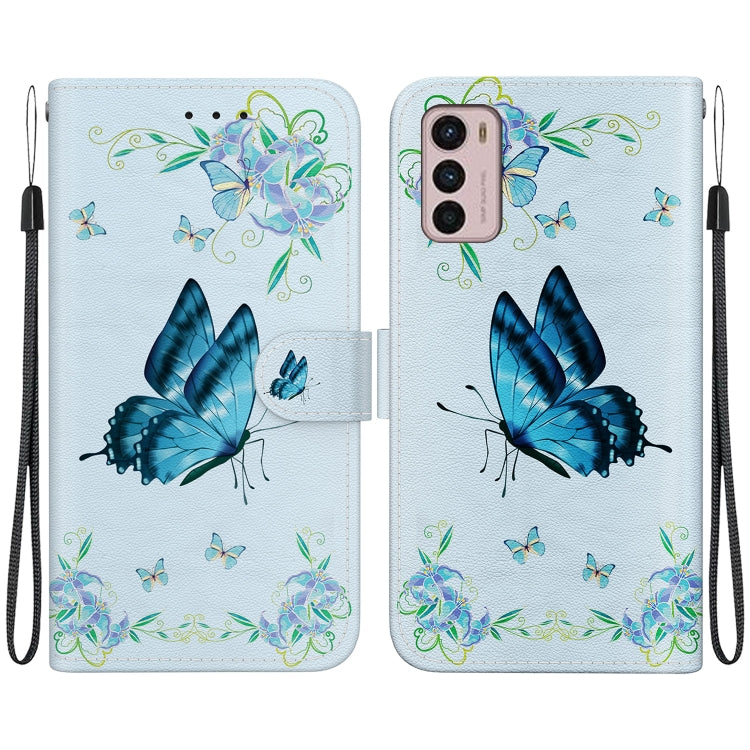 Estuche de Cuero para Motorola Moto G42 con Dibujo Coloreado y Textura de Cristal (Pensamientos Azules)