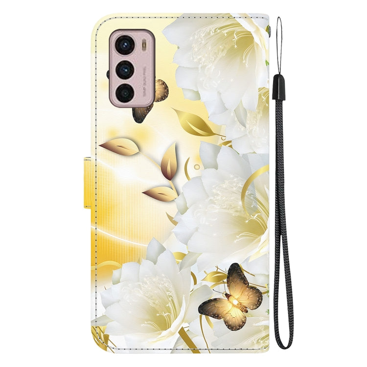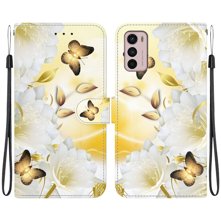 Funda de Cuero para Motorola Moto G42 con Dibujo Coloreado y Textura de Cristal (Epiphyllum Mariposa Dorada)