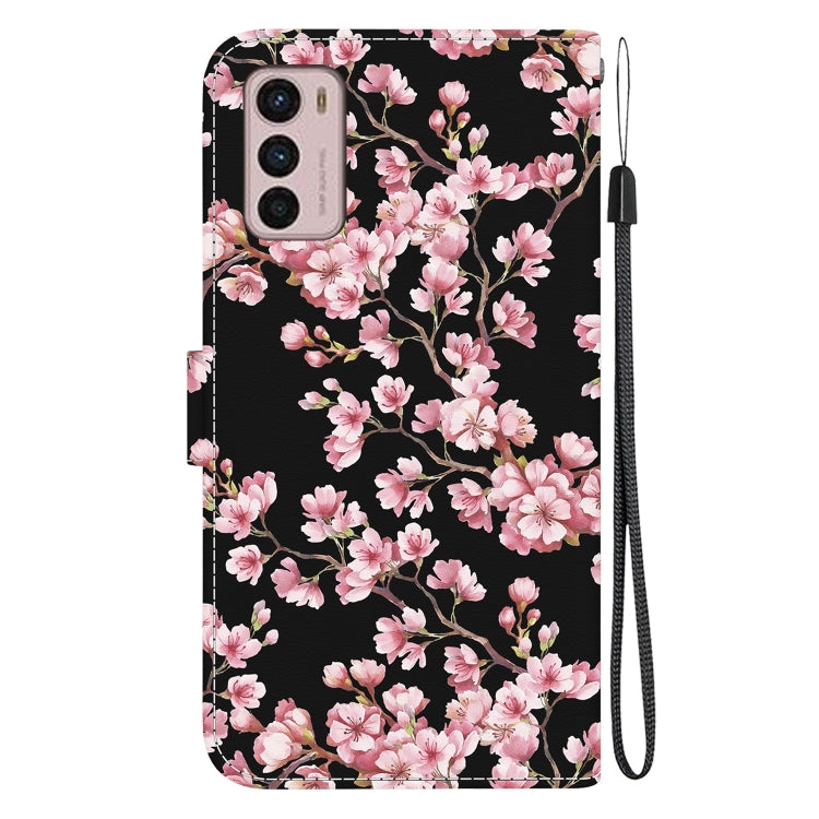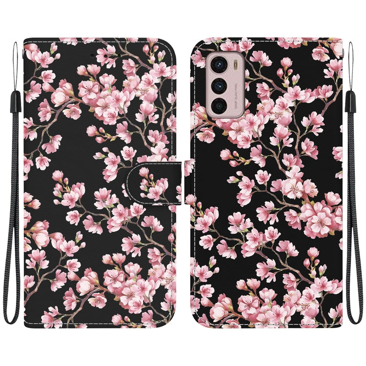Funda de Cuero para Motorola Moto G42 con Dibujo Coloreado y Textura de Cristal (Flor de Ciruelo)