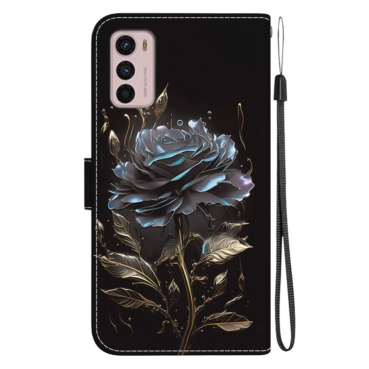 Funda de Cuero para Motorola Moto G42 con Dibujo Coloreado y Textura de Cristal (Rosa Negra)
