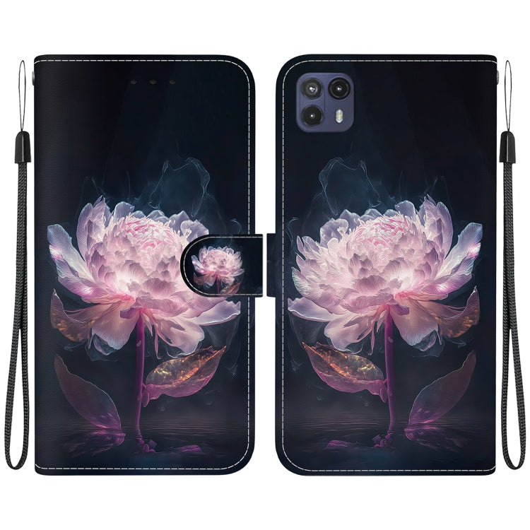 Funda de Cuero para Motorola Moto G50 5G con Dibujo Coloreado y Textura de Cristal (Peonía Púrpura)