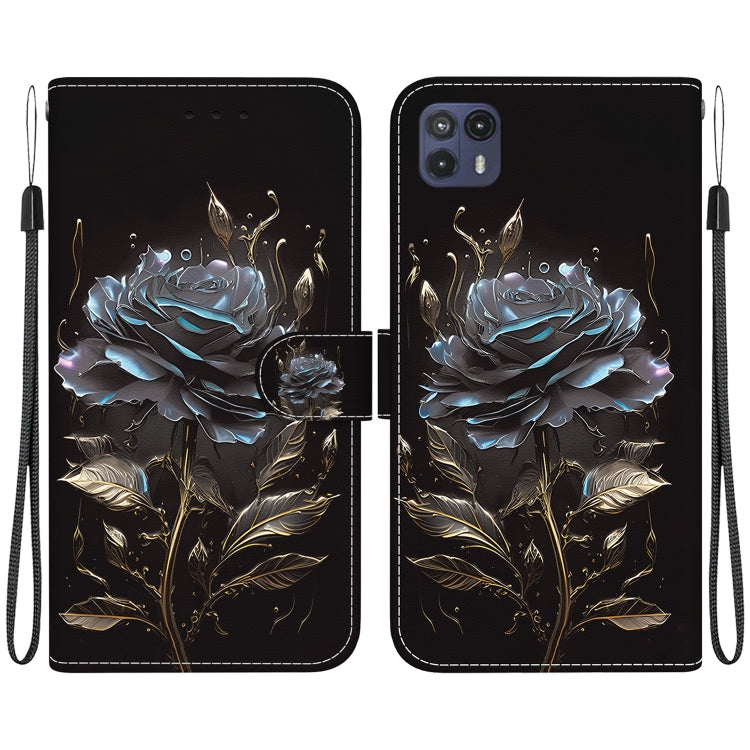 Funda de Cuero para Motorola Moto G50 5G con Dibujo Coloreado y Textura de Cristal (Rosa Negra)