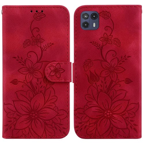 Funda para Motorola Moto G50 5G Lily de Cuero en Relieve (Rojo)