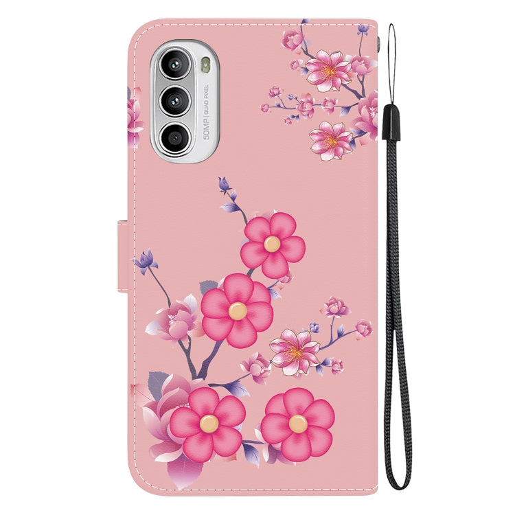 Estuche de Cuero para Motorola Moto G52 con Dibujo Coloreado y Textura de Cristal (Flores de Cerezo)
