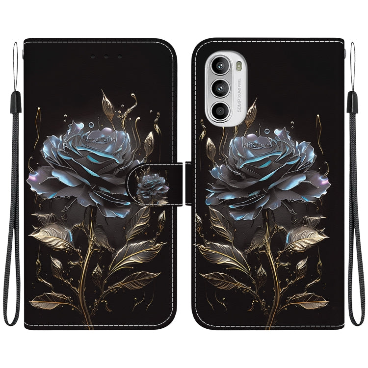 Funda de Cuero para Motorola Moto G52 con Dibujo Coloreado y Textura de Cristal (Rosa Negra)