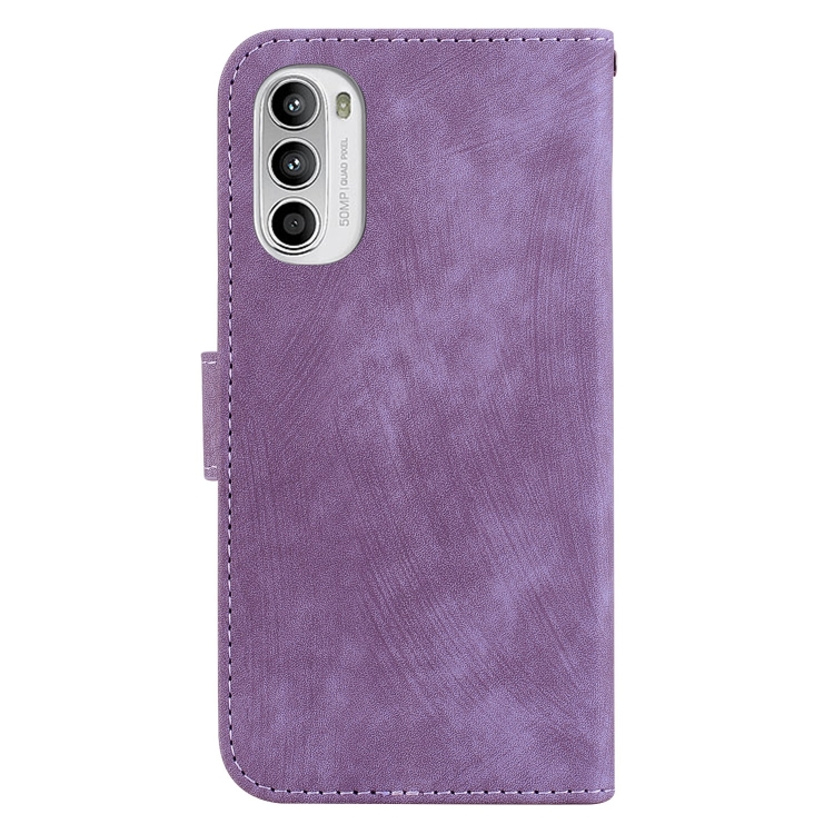Funda de Cuero para Motorola Moto G52 con Relieve Little Tiger (Púrpura)
