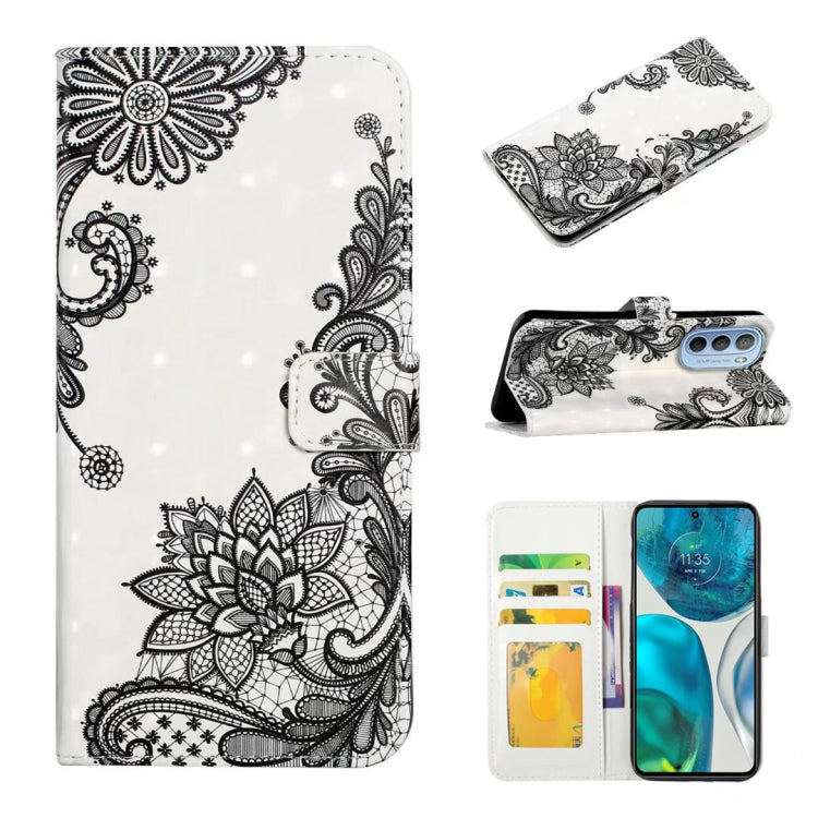 Funda de Cuero para Motorola Moto G52 con Dibujo 3D en Relieve al Óleo (Flor de Encaje)