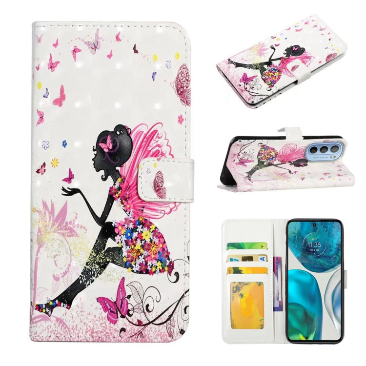 Funda de Cuero para Motorola Moto G52 con Dibujo 3D en Relieve al Óleo (Hada de Flores)