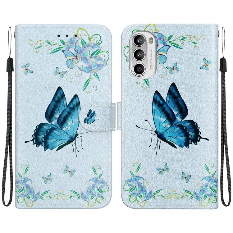 Estuche de Cuero para Motorola Moto G52J Jp con Dibujo Coloreado y Textura de Cristal (Pensamientos Azules)