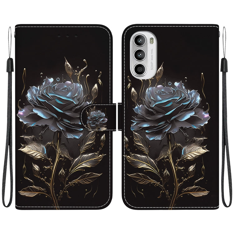 Funda de Cuero para Motorola Moto G52J Jp con Dibujo Coloreado y Textura de Cristal (Rosa Negra)