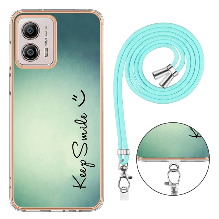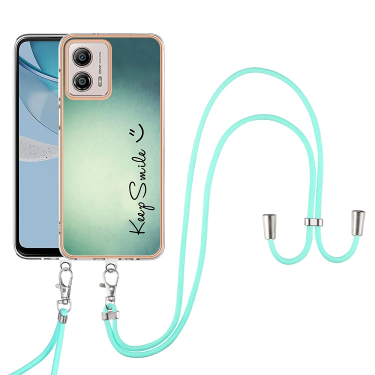 Estuche para Motorola Moto G53 / G13 / G23 IMD Doble Cara con Galvanoplastia y Cordón (Sonrisa)