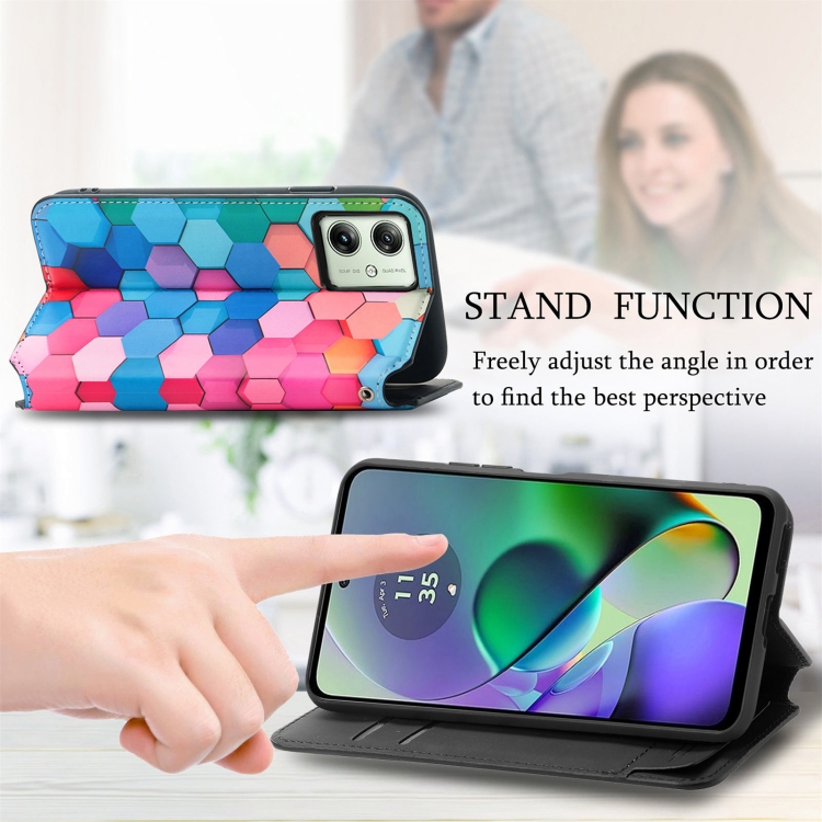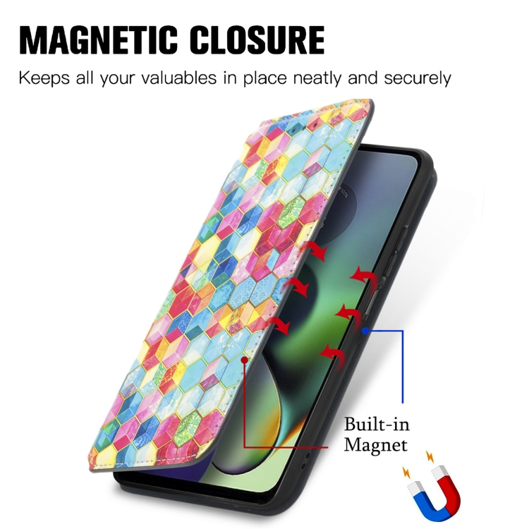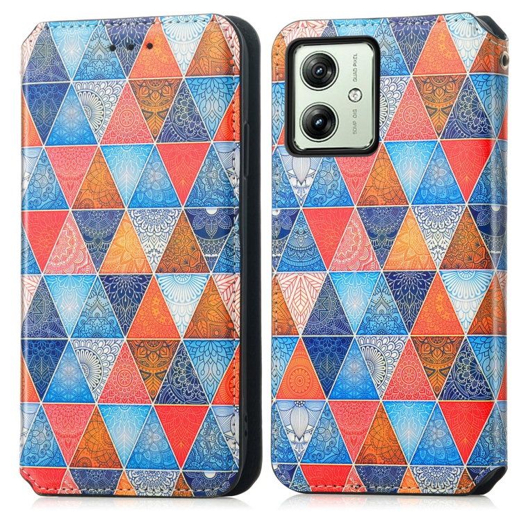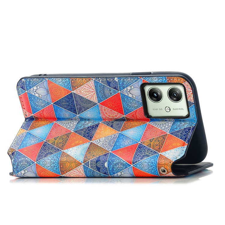 Funda de Cuero Magnética Caseneo para Motorola Moto G54 5G (Rhombus Mandala)