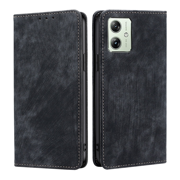 Estuche para Motorola Moto G54 5G Eu Edition de Cuero Magnético con Cepillo Antirrobo RFID (Negro)