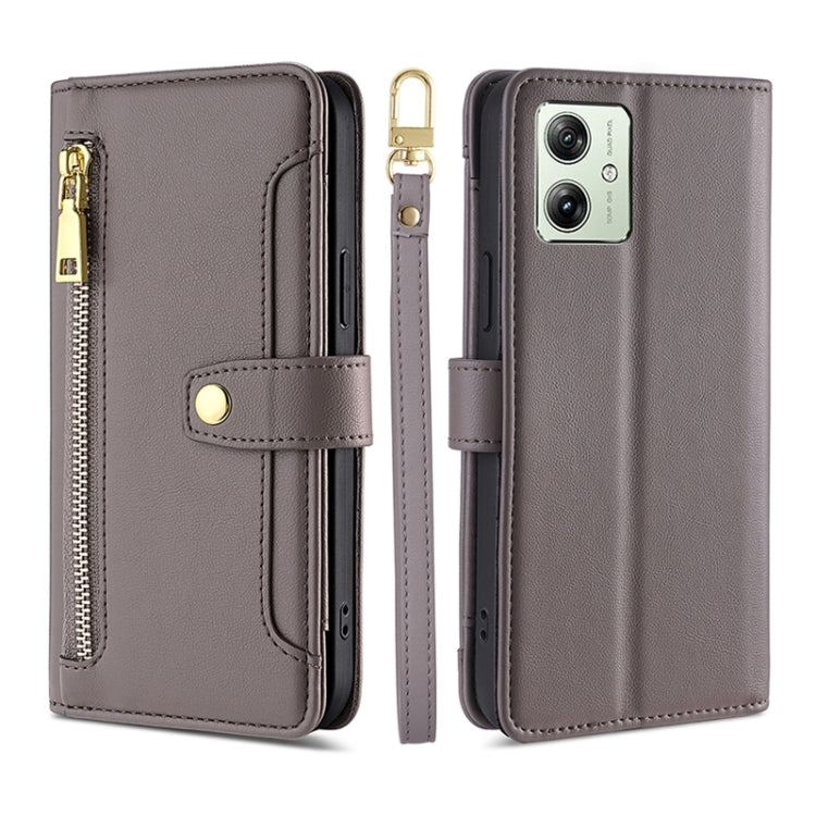 Funda de Cuero para Motorola Moto G54 5G Eu Edition Lite con Textura de Oveja y Cremallera Cruzada (Gris)