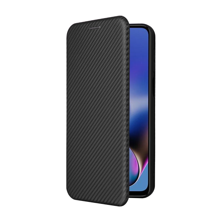 Funda de Cuero con Tapa para Motorola Moto G54 5G con Textura de Fibra de Carbono (Negro)