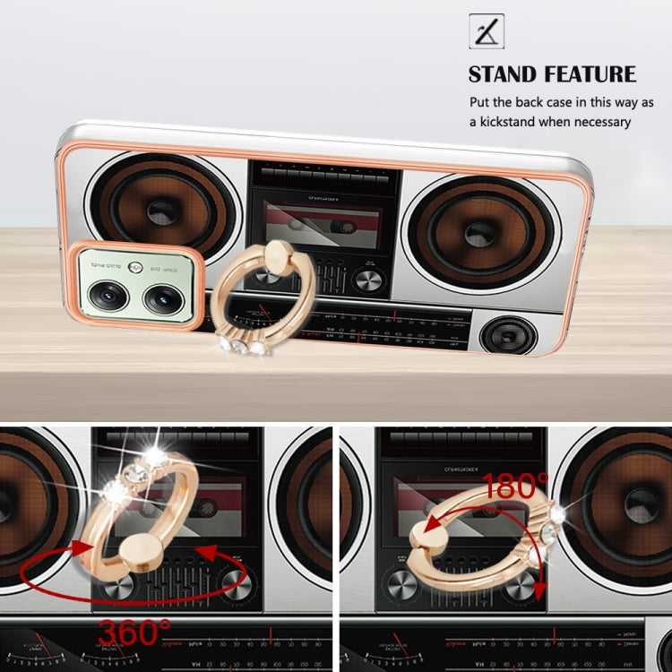 Estuche para Motorola Moto G54 Imd Doble Cara con Galvanoplastia y Soporte para Anillo (Radio Retro)