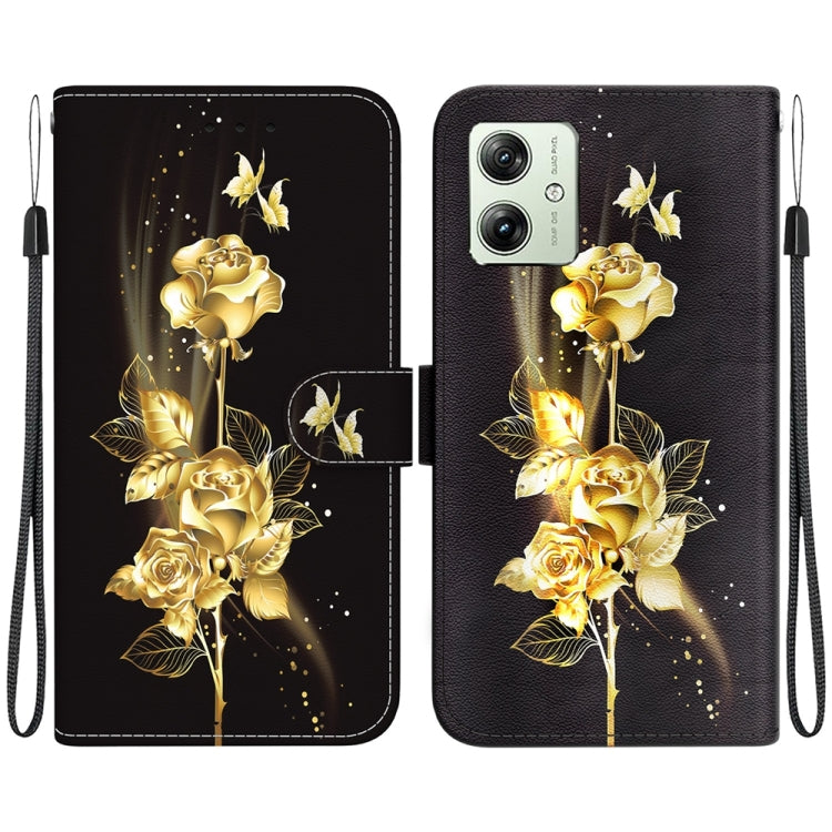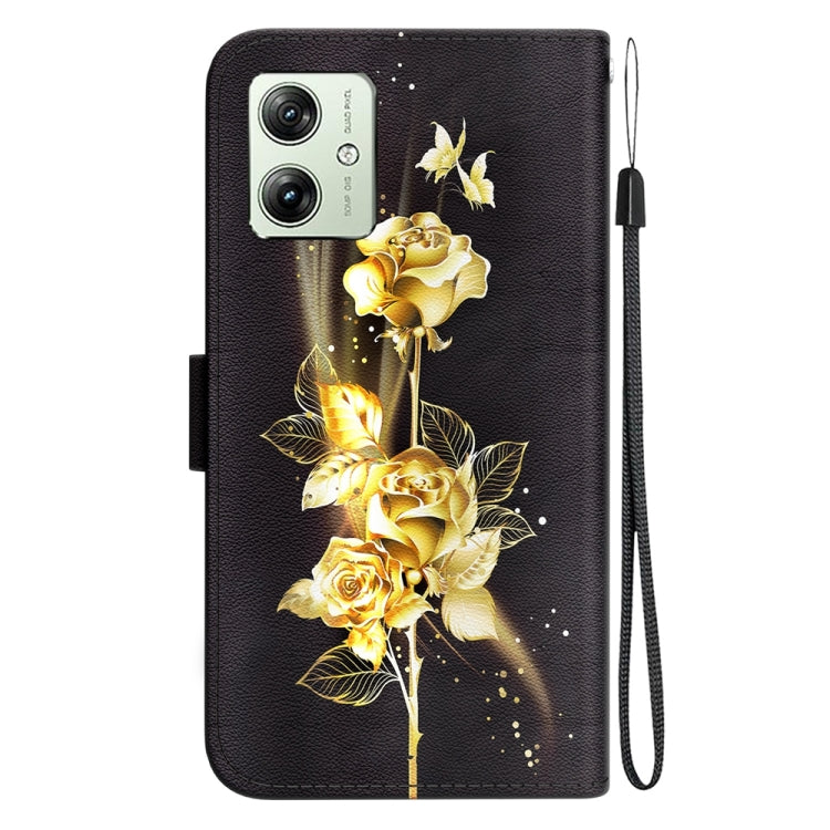 Funda de Cuero para Motorola Moto G54 con Dibujo Coloreado y Textura de Cristal (Mariposa Dorada Rosa)