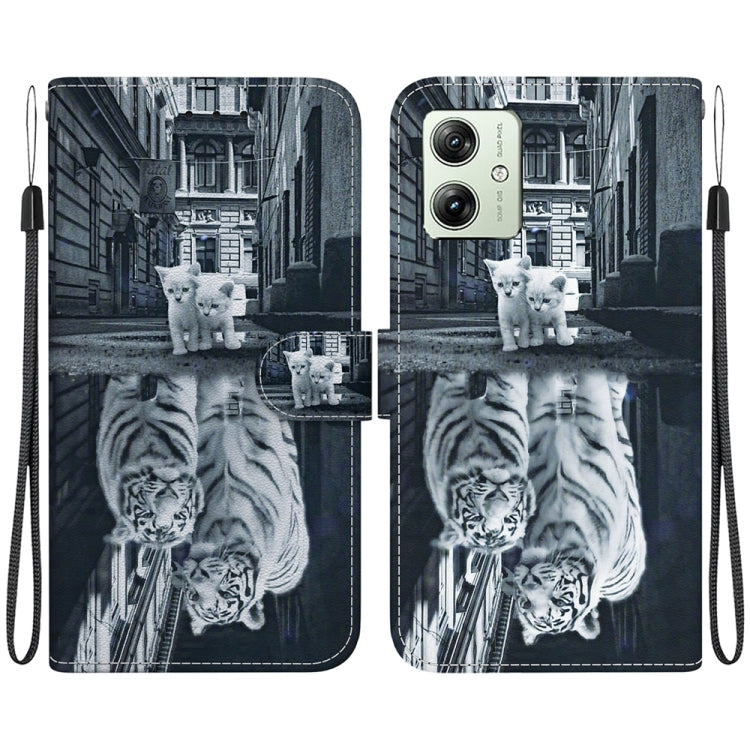 Funda de Cuero para Motorola Moto G54 con Dibujo Coloreado y Textura de Cristal (Reflejo de Tigre Gato)