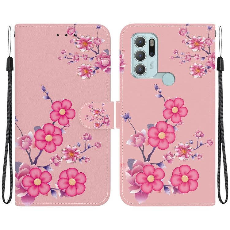 Estuche de Cuero para Motorola Moto G60S con Dibujo Coloreado y Textura de Cristal (Flores de Cerezo)