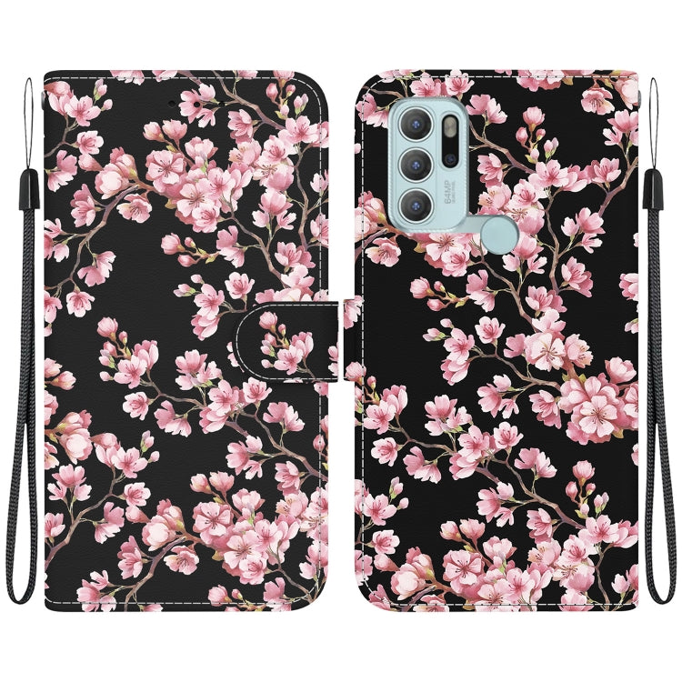 Funda de Cuero para Motorola Moto G60S con Dibujo Coloreado y Textura de Cristal (Flor de Ciruelo)