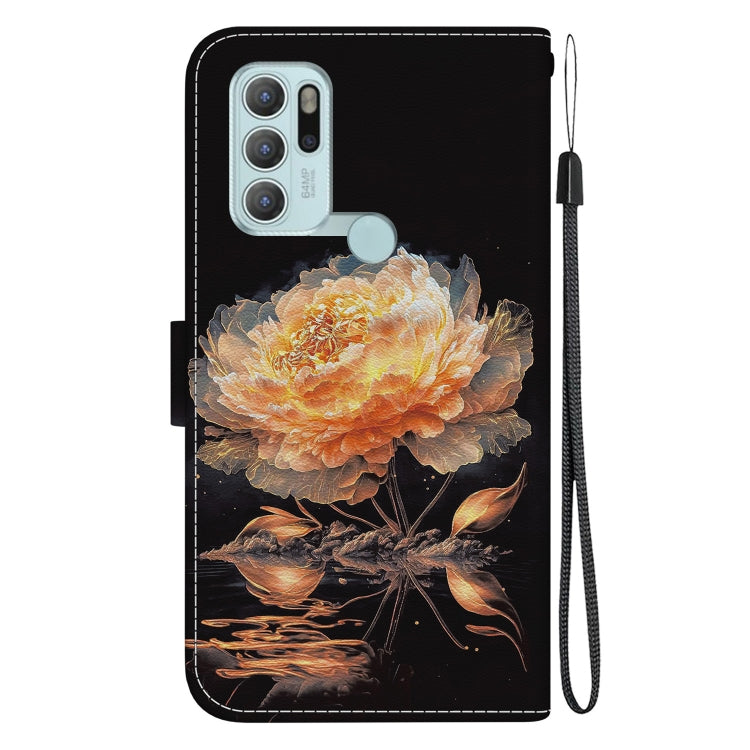 Funda de Cuero Motorola Moto G60S con Dibujo Coloreado y Textura de Cristal (Peonía Dorada)