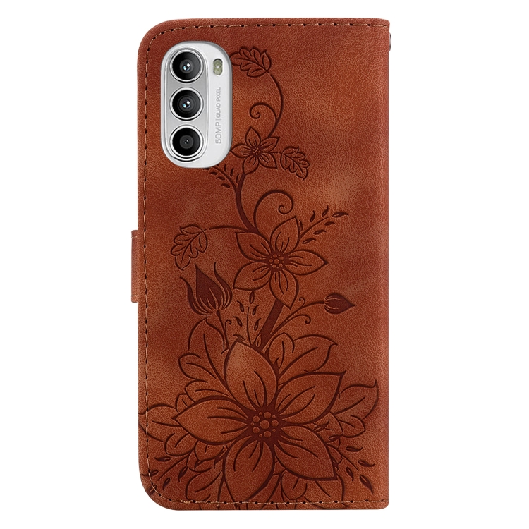 - 1x Funda de Cuero en Relieve para Motorola Moto G62 5G Lily (Marrón)