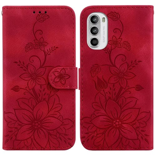 - 1x Funda para Motorola Moto G62 5G Lily de Cuero en Relieve (Rojo)