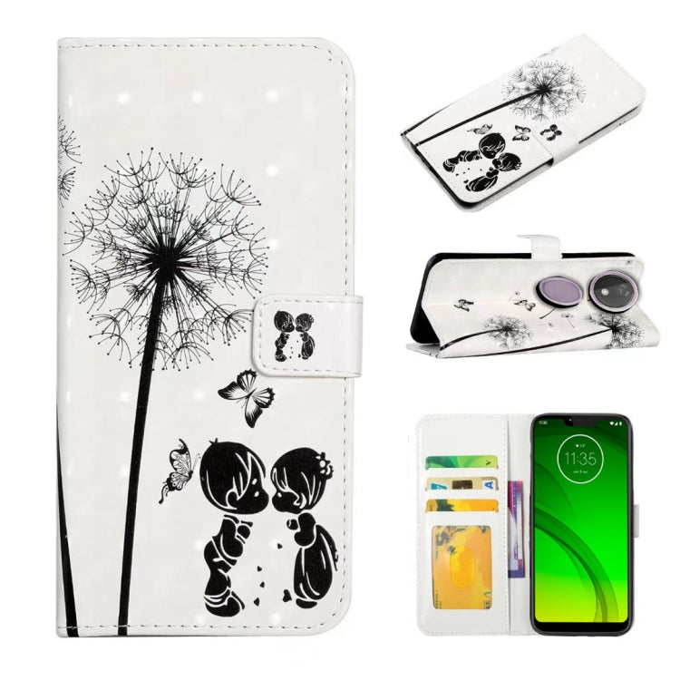 Funda de Cuero para Motorola Moto G7 Power con Dibujo 3D en Relieve (Pareja de Diente de León)