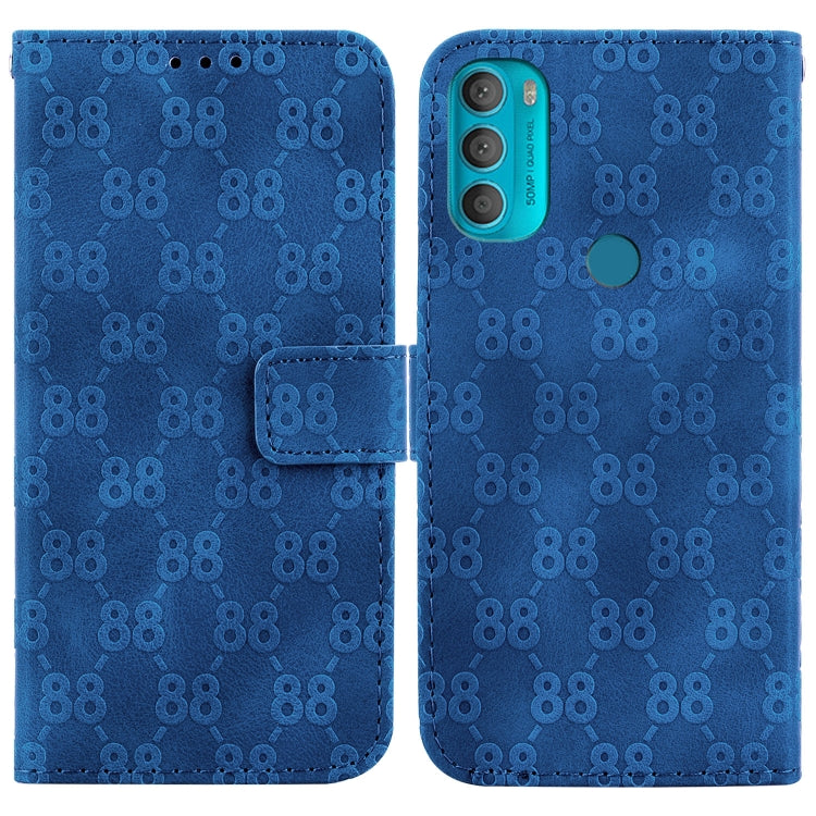 Estuche para Motorola Moto G71 5G de Cuero en Relieve con Doble Forma de 8 (Azul)