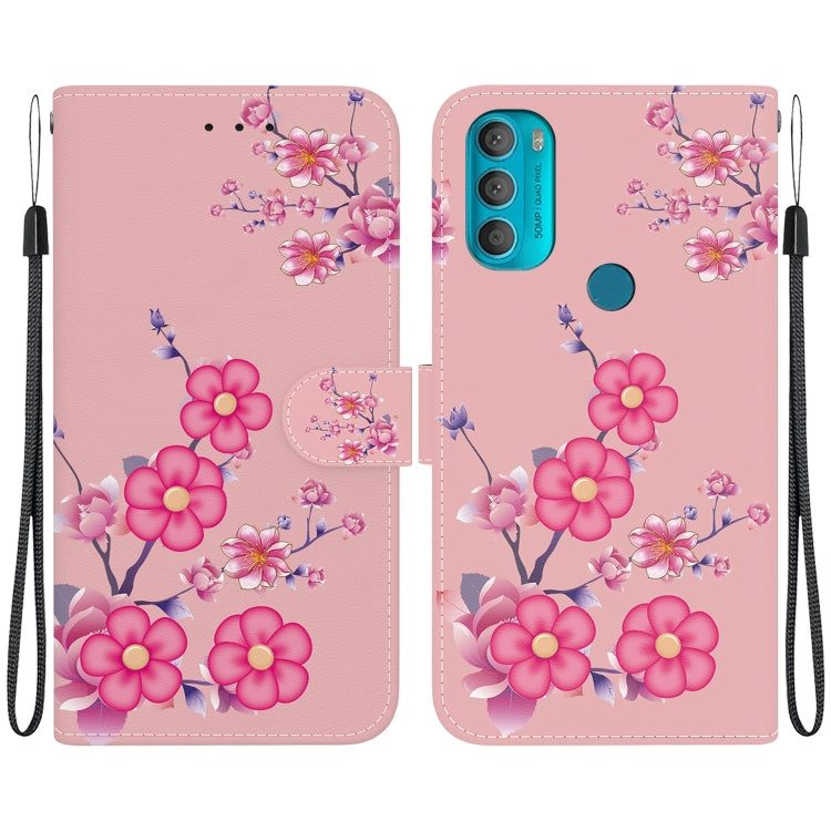 Funda de Cuero para Motorola Moto G71 con Dibujo Coloreado y Textura de Cristal (Flores de Cerezo)