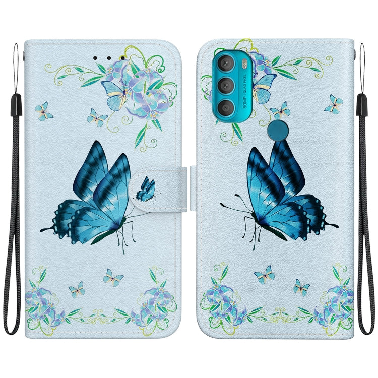 Funda de Cuero para Motorola Moto G71 con Dibujo Coloreado y Textura de Cristal (Pensamientos Azules)