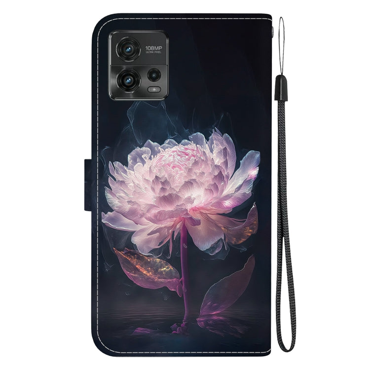 Estuche de Cuero para Motorola Moto G72 con Dibujo Coloreado y Textura de Cristal (Peonía Púrpura)