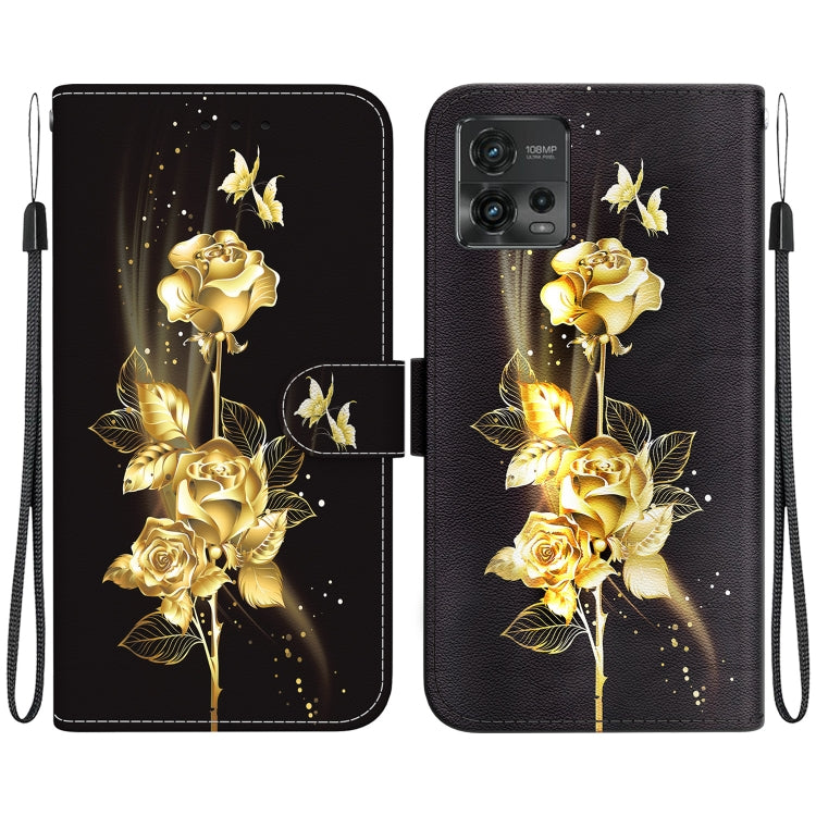 Funda de Cuero para Motorola Moto G72 con Dibujo Coloreado y Textura de Cristal (Mariposa Dorada Rosa)
