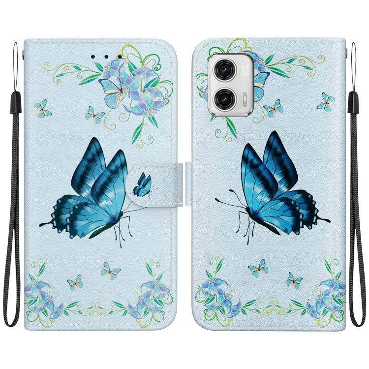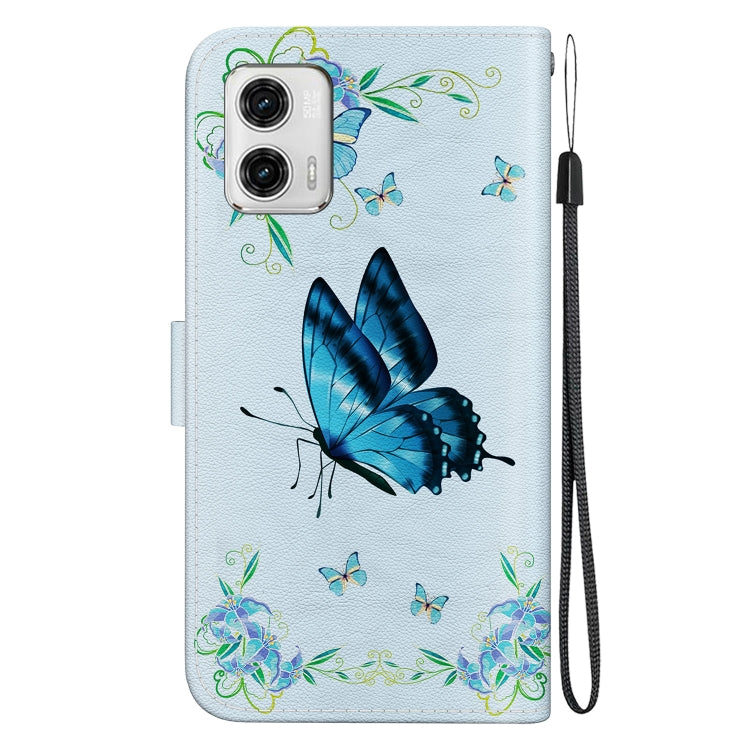 Funda de Cuero para Motorola Moto G73 con Dibujo Coloreado y Textura de Cristal (Pensamientos Azules)