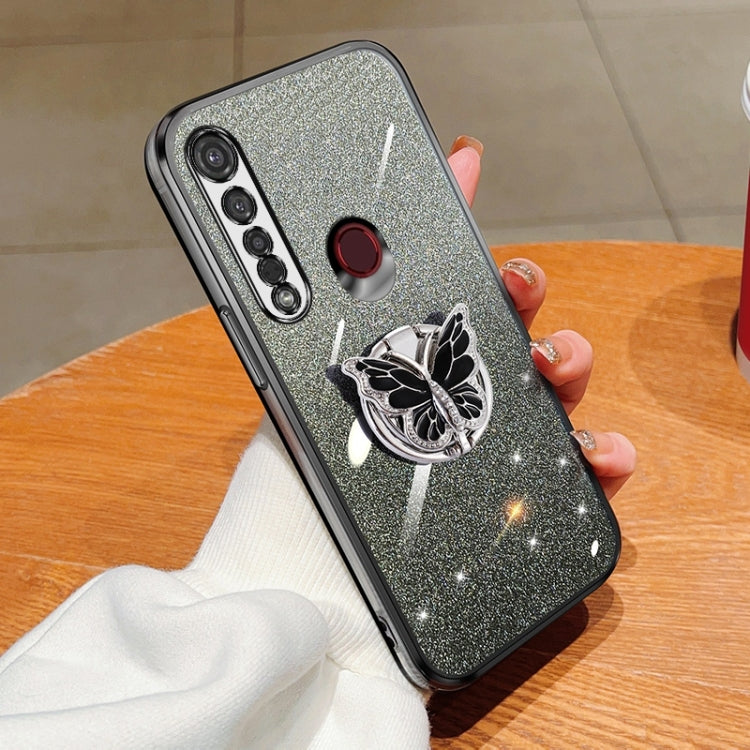 Funda TPU para Motorola Moto G8 Plus con Soporte de Mariposa y Brillo Degradado (Negro)