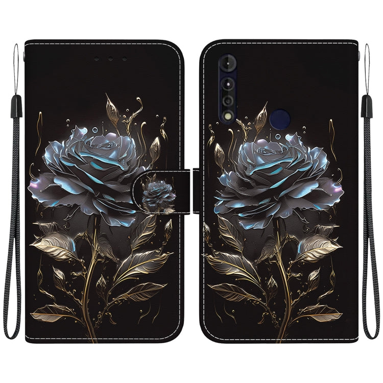 Funda de Cuero para Motorola Moto G8 Power Lite con Dibujo Coloreado y Textura de Cristal (Rosa Negra)
