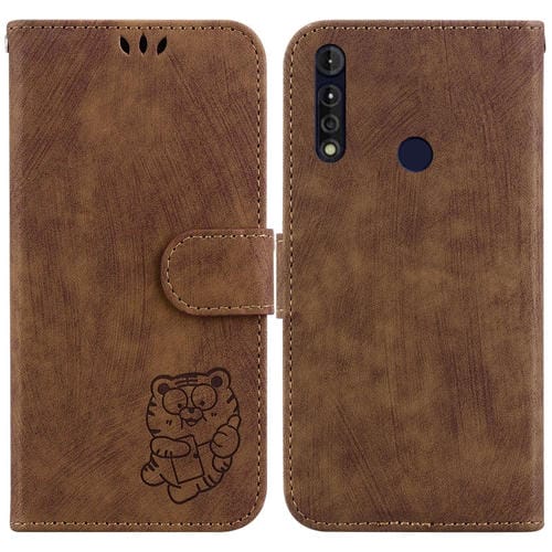 Funda para Motorola Moto G8 Power Lite de Cuero con Relieve Little Tiger (Marrón)