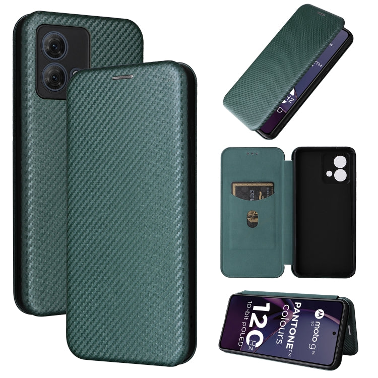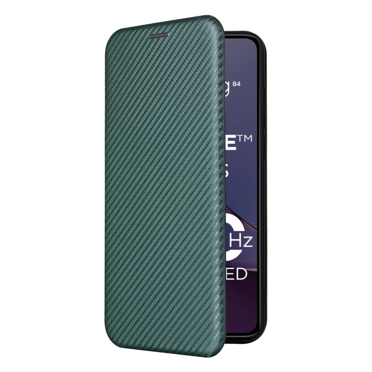 Funda de Cuero para Motorola Moto G84 5G con Tapa y Textura de Fibra de Carbono (Verde)