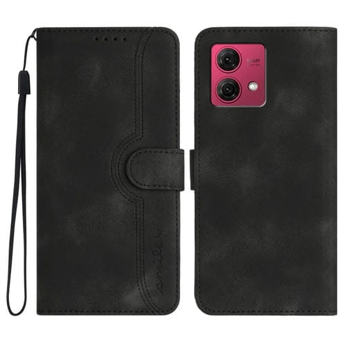 Funda de Cuero para Motorola Moto G84 5G con Sensación de Piel y Patrón de Corazón (Negro)