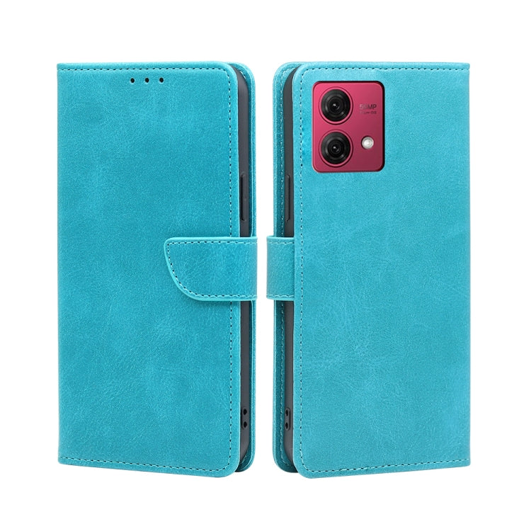 Funda para Motorola Moto G84 5G de Cuero con Tapa, Hebilla y Textura de Becerro (Azul Claro)