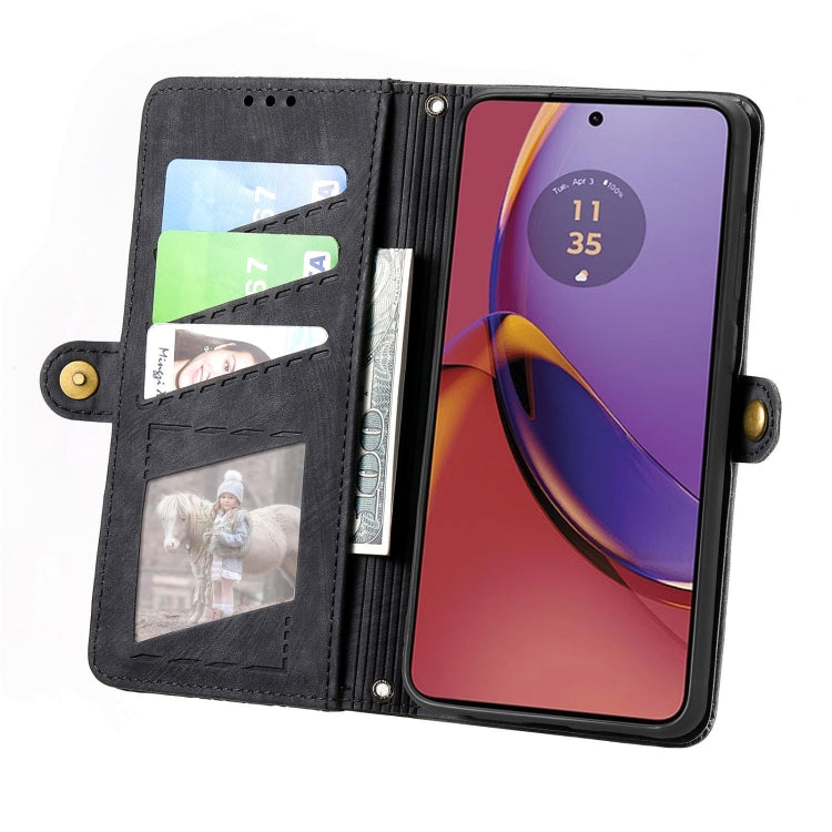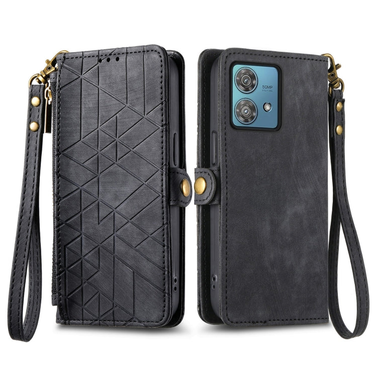 Funda de Cuero para Motorola Moto G84 con Hebilla Lateral y Billetera con Cremallera (Negro)