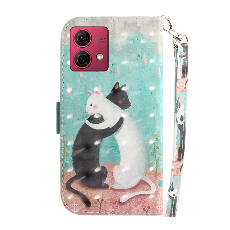 Funda de Cuero para Motorola Moto G84 con Tapa Horizontal y Diseño 3D (Gato Blanco Negro)