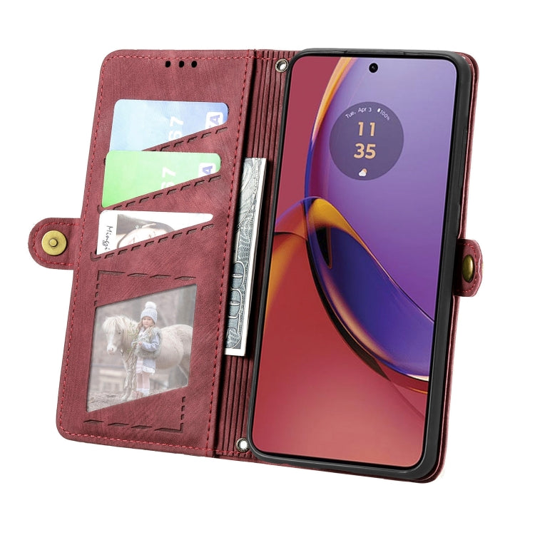 Funda para Motorola Moto G84 de Cuero con Hebilla Lateral y Billetera con Cremallera (Rojo)