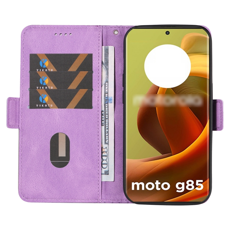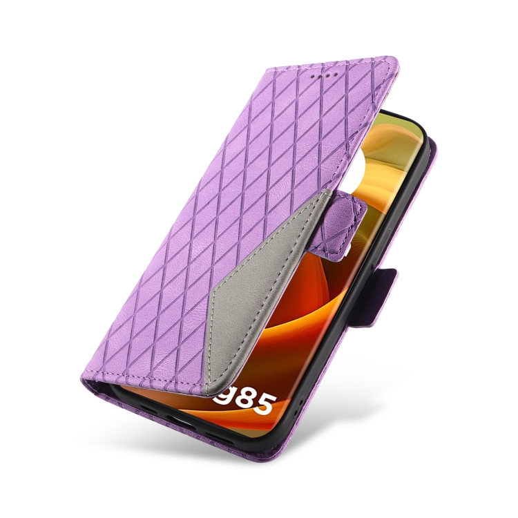 Funda de Cuero para Motorola Moto G85 con Entramado Rómbico de Dos Colores (Púrpura)