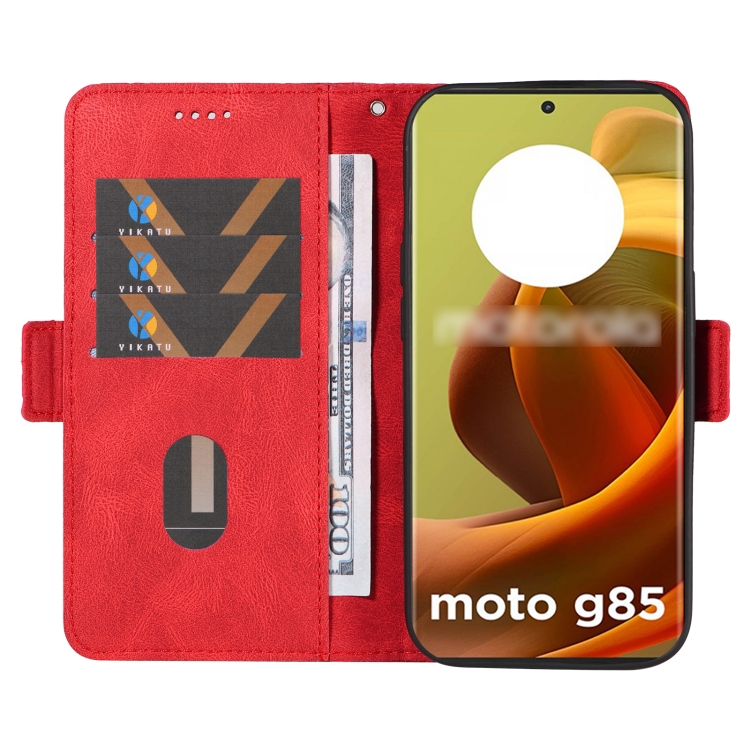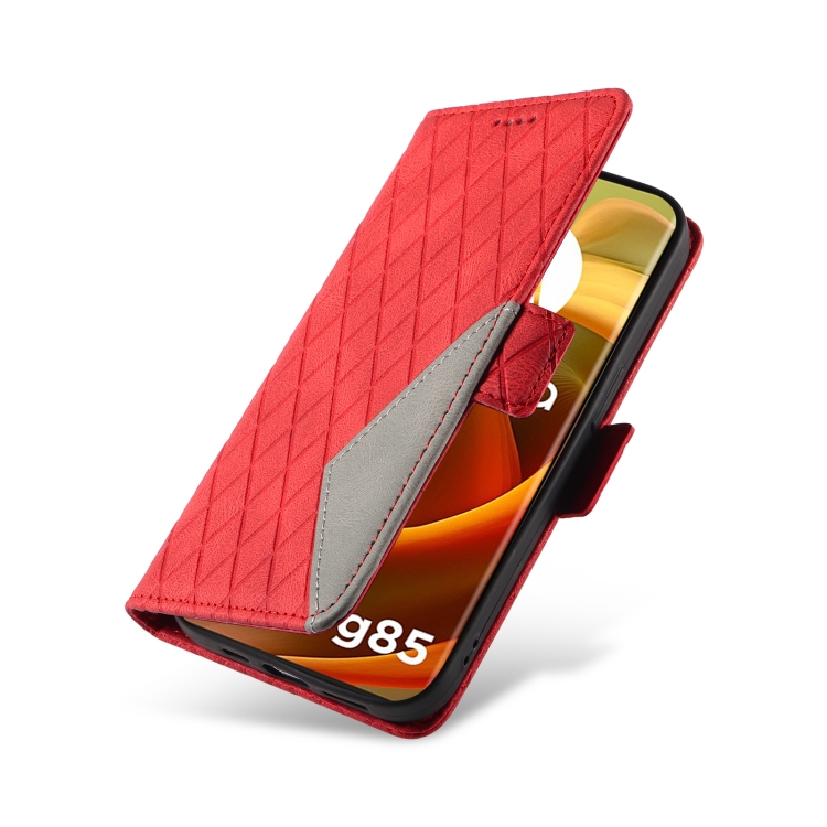 Funda de Cuero para Motorola Moto G85 con Entramado Rómbico de Dos Colores (Rojo)
