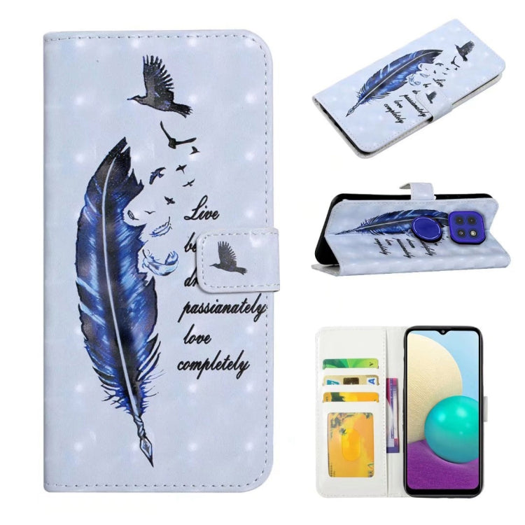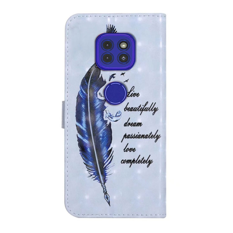 Funda de Cuero para Motorola Moto G9 Play y E7 Plus con Dibujo 3D en Relieve al Óleo (Pluma Azul)
